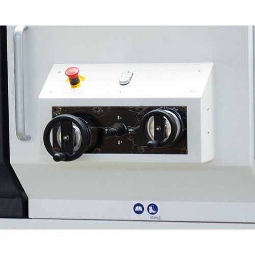 • Joystick zum Verfahren der X-, Z-AchseHandrad zum manuellen Verfahren der X-Achse und Z-AchseNot-Halt-SchlagschalterZustimmtaster