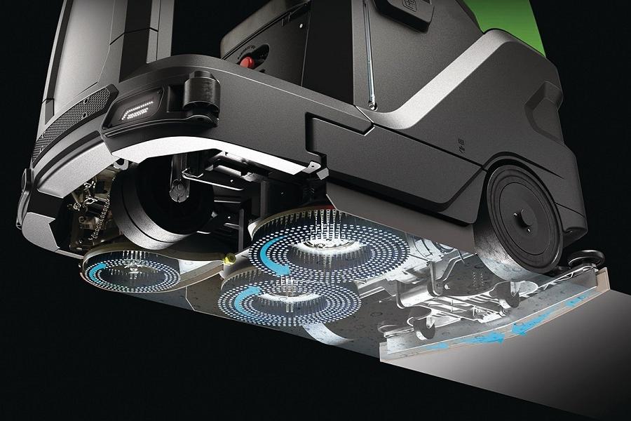 Eine ganz neue Dimension in puncto Design, Komfort und Effizienz bietet Ihnen die Aufsitzscheuersaugmaschine ASSM-Serie von Cleancraft. Sowohl Bedienkomfort als auch ergonomisches Arbeiten sowie der Einsatz innovativer Technologien wurden hier auf ein ganz neues Level gehoben. Schon allein das Design wurde so gestaltet, dass alle sensitiven, mechanischen Teile komplett geschützt sind und unbeabsichtigte Stöße verlässlich abgefangen werden. Der tiefliegende Schwerpunkt sorgt für zusätzliche Stabilität und Sicherheit, insbesondere in Kurvenlage und beim Überwinden von Rampen. Mit einem Bürstendruck von bis zu 100 kg entfernt die Aufsitzscheuersaugmaschine selbst hartnäckigen Schmutz. Wasser– und Reinigungsmittelmenge können exakt und separat dosiert werden, sodass Sie jederzeit effizient und ressourcenschonend arbeiten. Durch ein innovatives Saugsystem trocknet der Boden sofort und Sie sind keinerlei Rutschgefahr ausgesetzt. Dabei arbeitet der 3-stufige Saugmotor äußerst leise, weshalb die Reinigungsmaschine auch in lärmempfindlicher Umgebung problemlos eingesetzt werden kann. Über ein Zonenprogramm werden verschiedene Umgebungsarten mit voreingestellten Arbeitskonfigurationen gespeichert, die der Bediener bequem per Knopfdruck auswählen kann, um die Maschine im Handumdrehen an die zu reinigende Umgebung anzupassen. Eine Rückwärtskamera ermöglicht eine konstante Kontrolle der Reinigungsleistung, ohne dass der Bediener dabei den Blick von der Fahrrichtung abwenden muss.