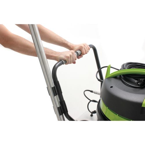 •   Ergonomisches Transportfahrwerk mit praktischen Halteklammern für Saugrohr