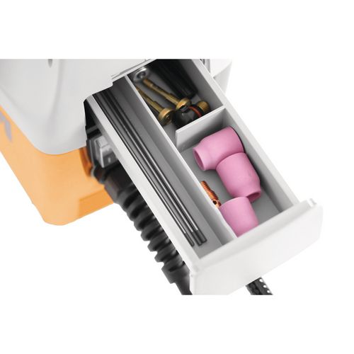 Abbildung zeigt als Zubehör erhältlichen Brenner R-TIG 210