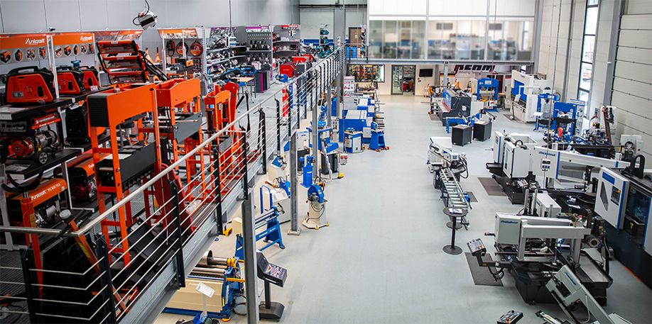 Im Vorführzentrum am Hauptstandort Hallstadt, bei Bamberg, erleben Sie auf ca. 2.000 m² viele Highlights live. Vier Fachberater stehen für Händler und Endkunden mit ihrem Spezialwissen zur Verfügung. Die Maschinen im Vorführzentrum repräsentieren einen Verkaufswert von ca. zwei Millionen Euro.